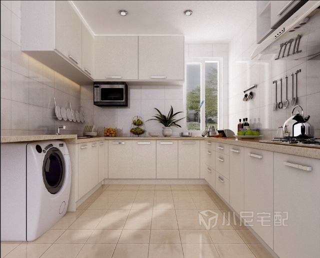 廚房顯得非常寬敞明亮。櫥柜規(guī)中規(guī)矩,沒有浪費多余的空間。