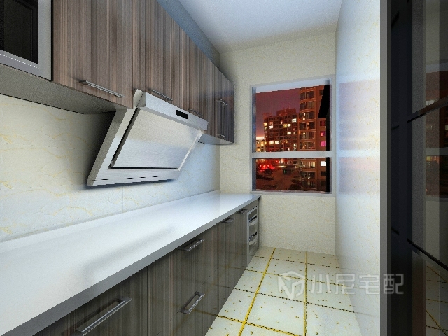 深色的櫥柜與白色的臺(tái)面相搭配,使得整個(gè)廚房更顯得時(shí)尚,現(xiàn)代