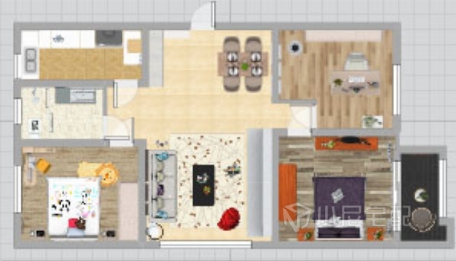 設計源于生活又高于生活。現代生活節奏加快,家成為人們放松的港灣。本設計基于年輕自由的元素,結合家具特色,本著以人為本的原則,注重生活的品質。