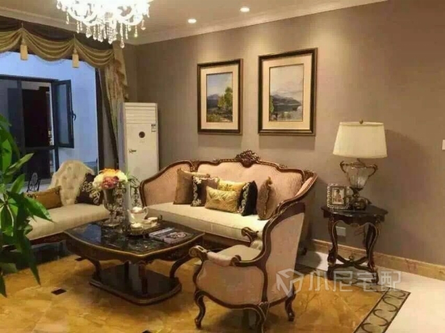 少了富麗堂皇的裝飾和濃烈的色彩,呈現的則是一片清新,典雅和大氣并存的輕松空間。肌理的電視背景墻,明亮素實的窗簾,和古典色彩的地毯相呼應的吊燈,加上造型簡潔大方的沙發構成了一個典型的歐洲世界,送給心靈一次歐洲的游歷。