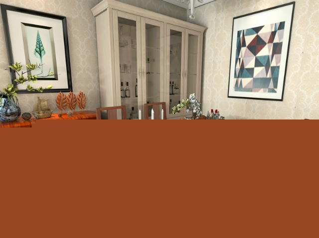 安靜的木質復古色與歡快的跳舞蘭,一動一靜,圓形的裝飾盤,呼應了餐廳的空間。