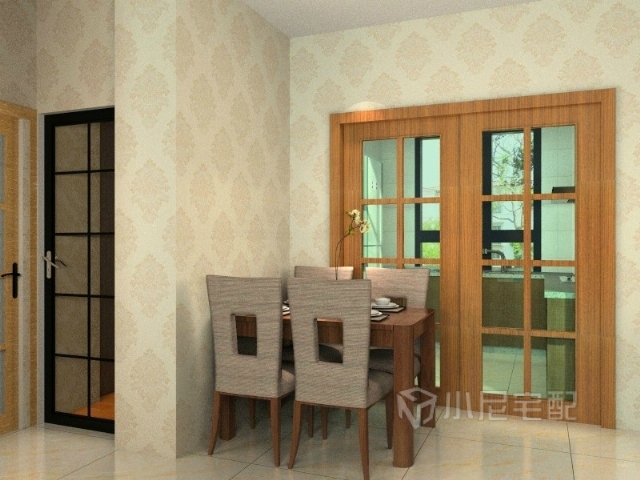 餐桌顏色和廚房門色彩相呼應。