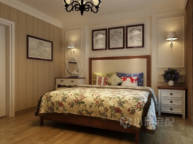 臥室一美式獨特的方式來表達,顯示業主的美好,舒適,安靜的反應了業主的又有浪漫的追求。