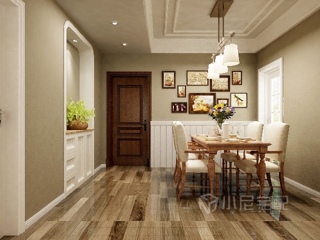 餐廳的裝飾墻顯示主人的性格,時而穩重時而明朗,突出主人的喜好和安靜。