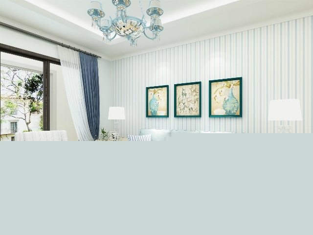 藍白條紋的壁紙與毛絨絨的條形地毯恰如波浪式的海面,帶給人們靜謐的情懷。