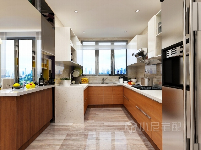 開放式廚房使空間顯得更加開闊明亮。