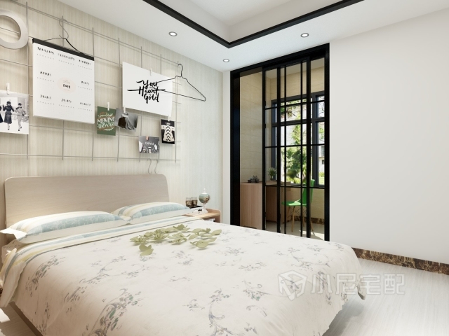 主臥做一個簡單的吊頂,配上照片墻,既簡單又舒適