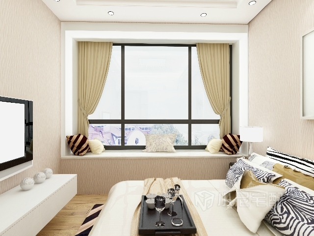 飄窗作為休閑和閑聊喝茶水、又觀賞美景又可以調(diào)休眼睛疲勞。