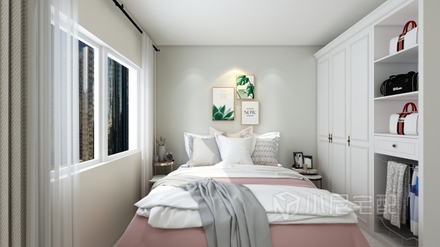 主臥則滿足了女主人的喜好,偏北歐的極簡(jiǎn)風(fēng)格。裝飾的照片為兩個(gè)人的婚紗照、流漏出一絲絲的溫馨情感。