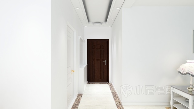 門廳定制鞋柜,有效遮擋分水器白色干凈利落與旁邊防盜門的深紅色相呼應