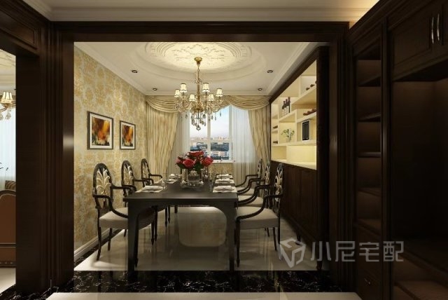 雖然房子空間不是很大但是女主人很喜歡奢華的感覺,客餐廳的設計滿足了女主人的愿望,