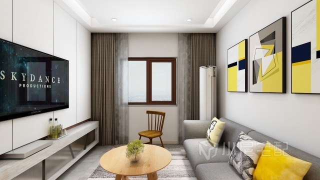 客廳空間較小,所以采用原木色小茶幾配灰色雙排沙發(fā),一切顯得簡潔干練