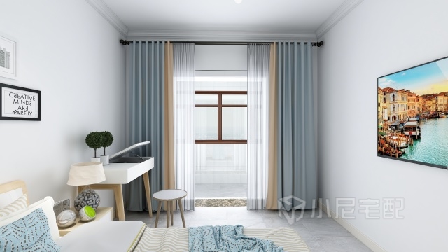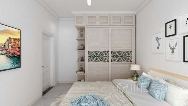 主臥室進門處放個圓角衣柜,進門顯得舒適,配合原木色床套整個屋子一切簡潔為主