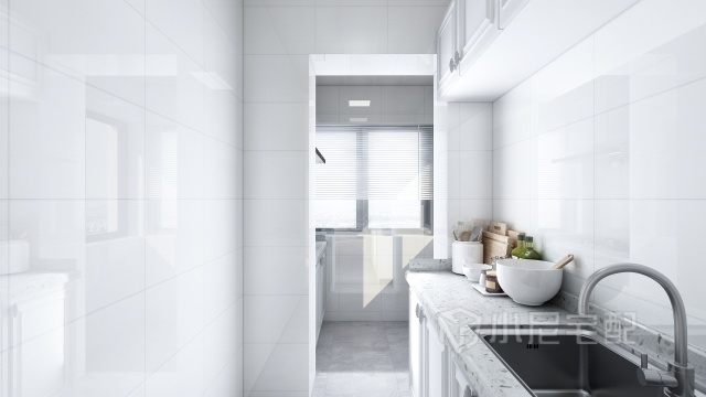 廚房白色墻磚配合白色吸塑櫥柜,干凈,清新