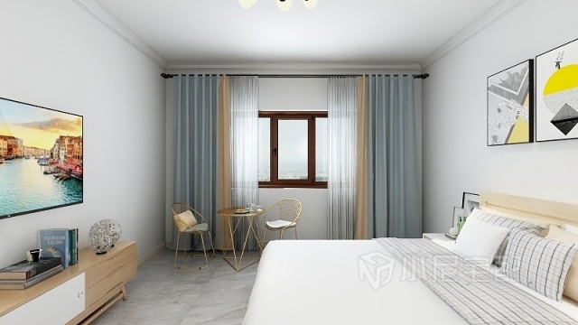 次臥室空間較大,放置轉角衣柜配合原木色床,使空間顯得緊湊而又不擁擠,窗臺邊放個休閑椅,盡享午后陽光
