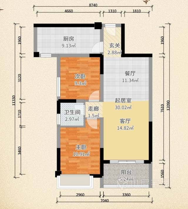 半高柜將餐廳和客廳分隔開,增加收納空間,同時統一風格