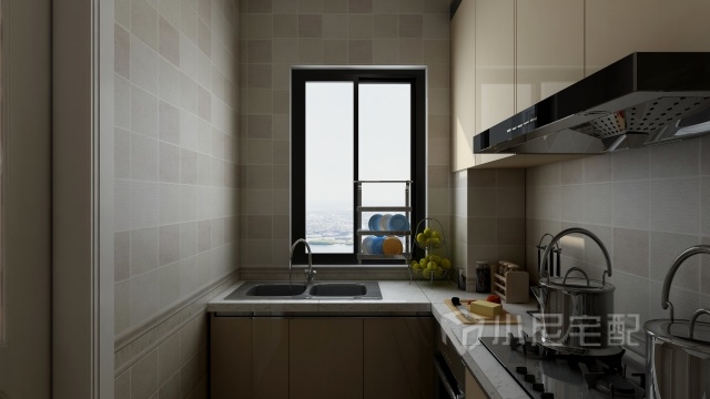 廚房櫥柜配合和墻磚選擇同色系協調自然