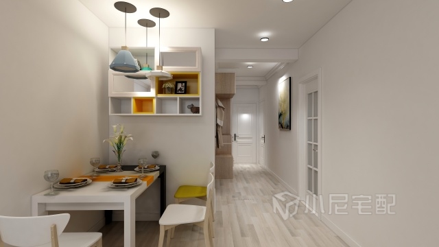 餐廳空間較小,放置懸掛儲物格即增加儲物空間,又減少地面面積,套黃格顯得生動活潑