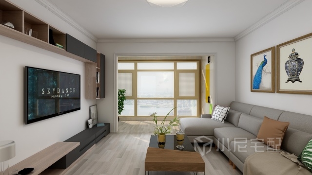 客廳采用原木色配淺色原木底板簡約不簡單