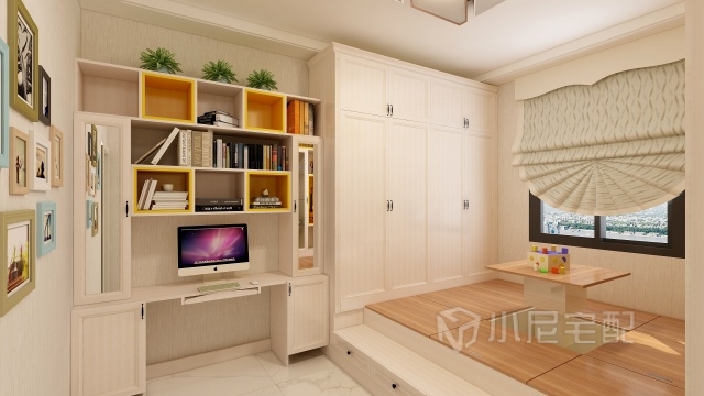 衣柜和書柜相結(jié)合,讓孩子的屋子能夠省出更多的空間來(lái)玩耍。