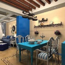 地中海風格的靈魂就是“蔚藍色的浪漫情懷,海天一色、艷陽高照的純美自然”。設計中添加咖色以中和色調,爛漫中不失沉穩